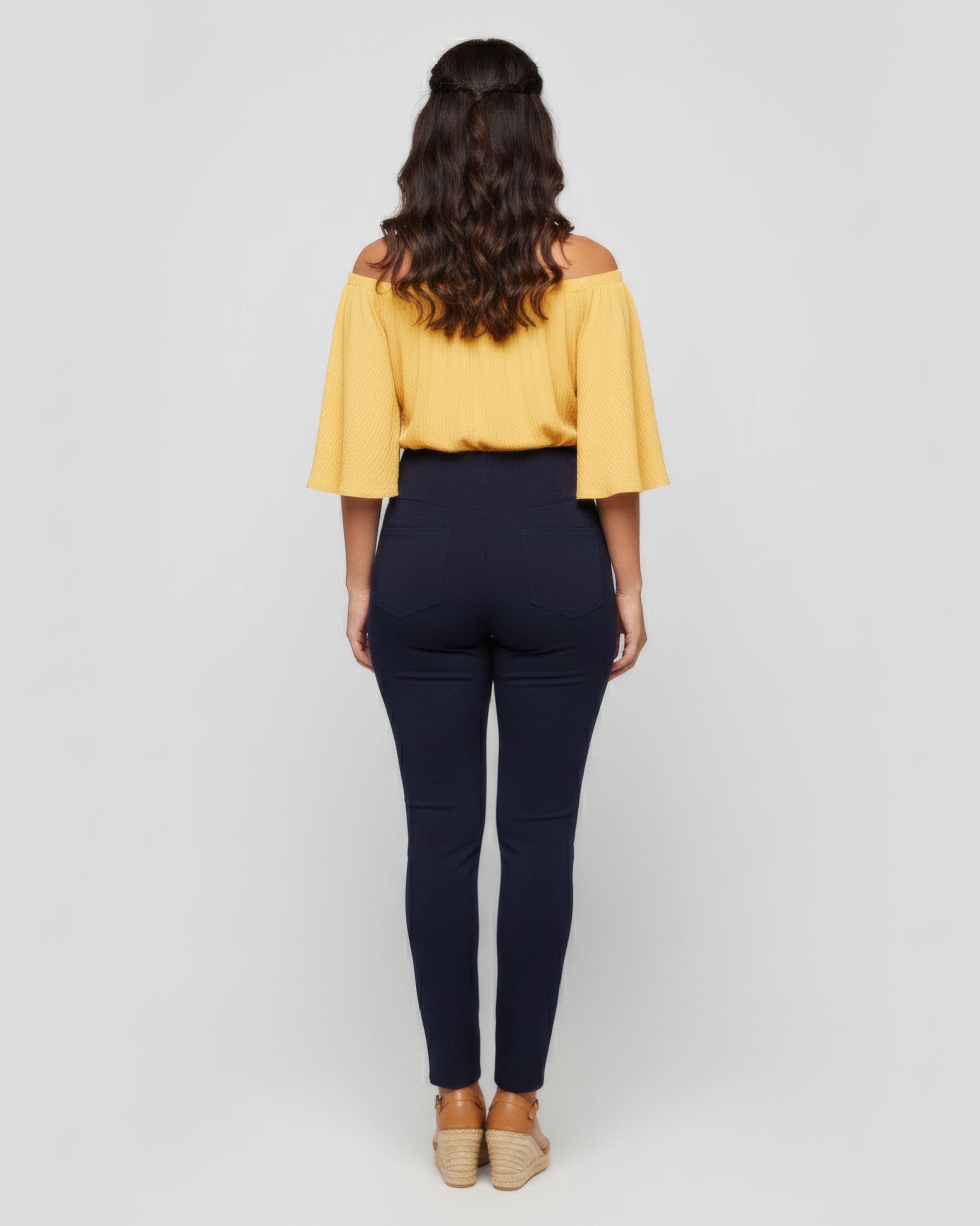 • Functional back pockets + curved front seam pockets