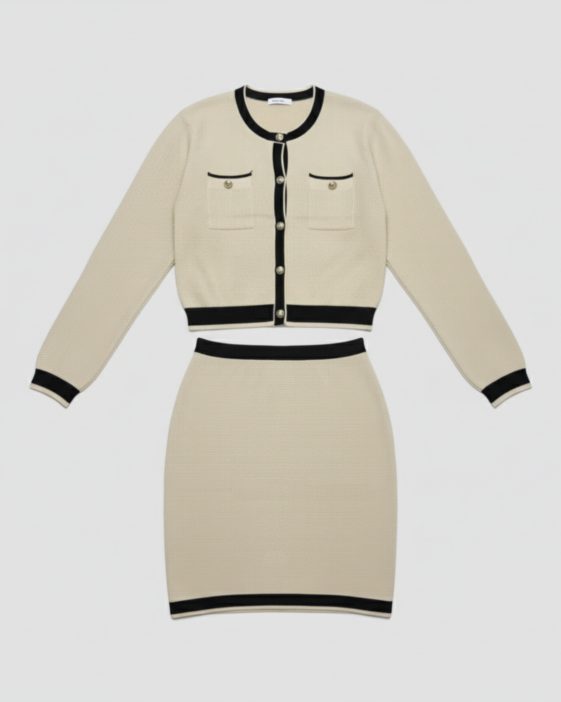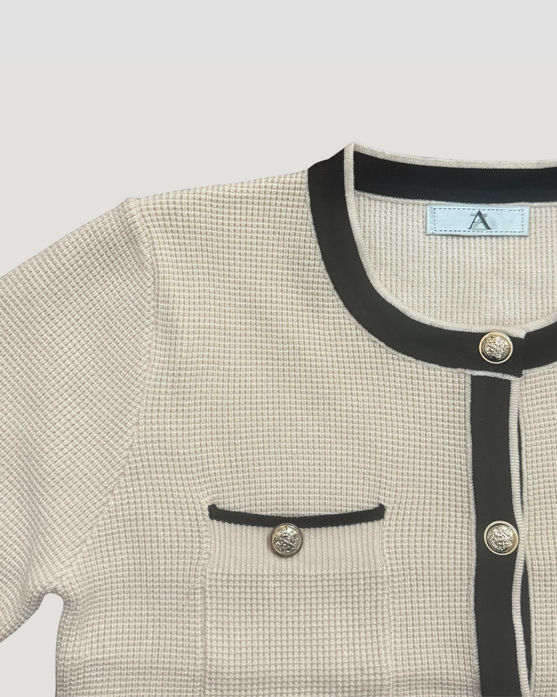 • Button-front cardigan with gold-tone buttons and faux pocket details