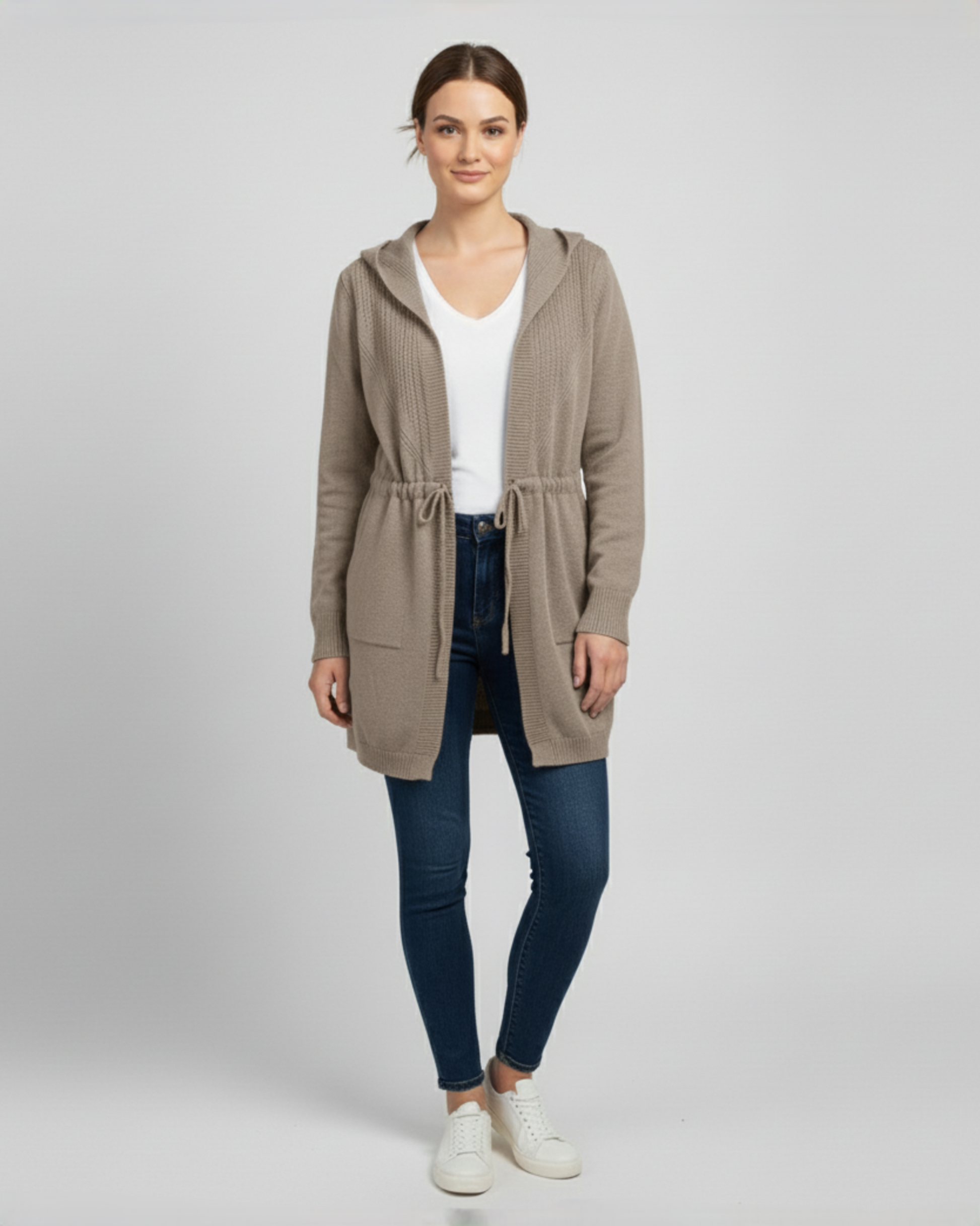 TIE WAIST CARDIGAN - TAUPE